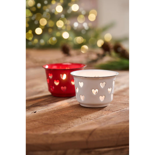 Portavela Esmaltado Blanco Corazones H: 5 cm