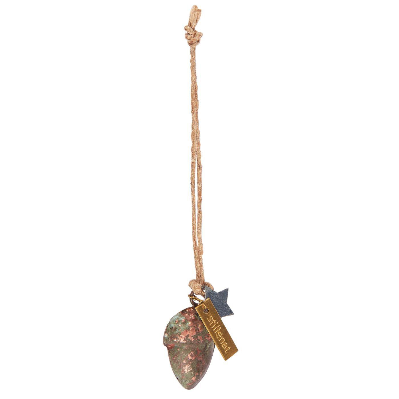 Transforma tu estilo navideño con esta bellota colgante de cobre envejecido, una pieza artesanal de tamaño compacto, la hace versátil para cualquier ocasión.