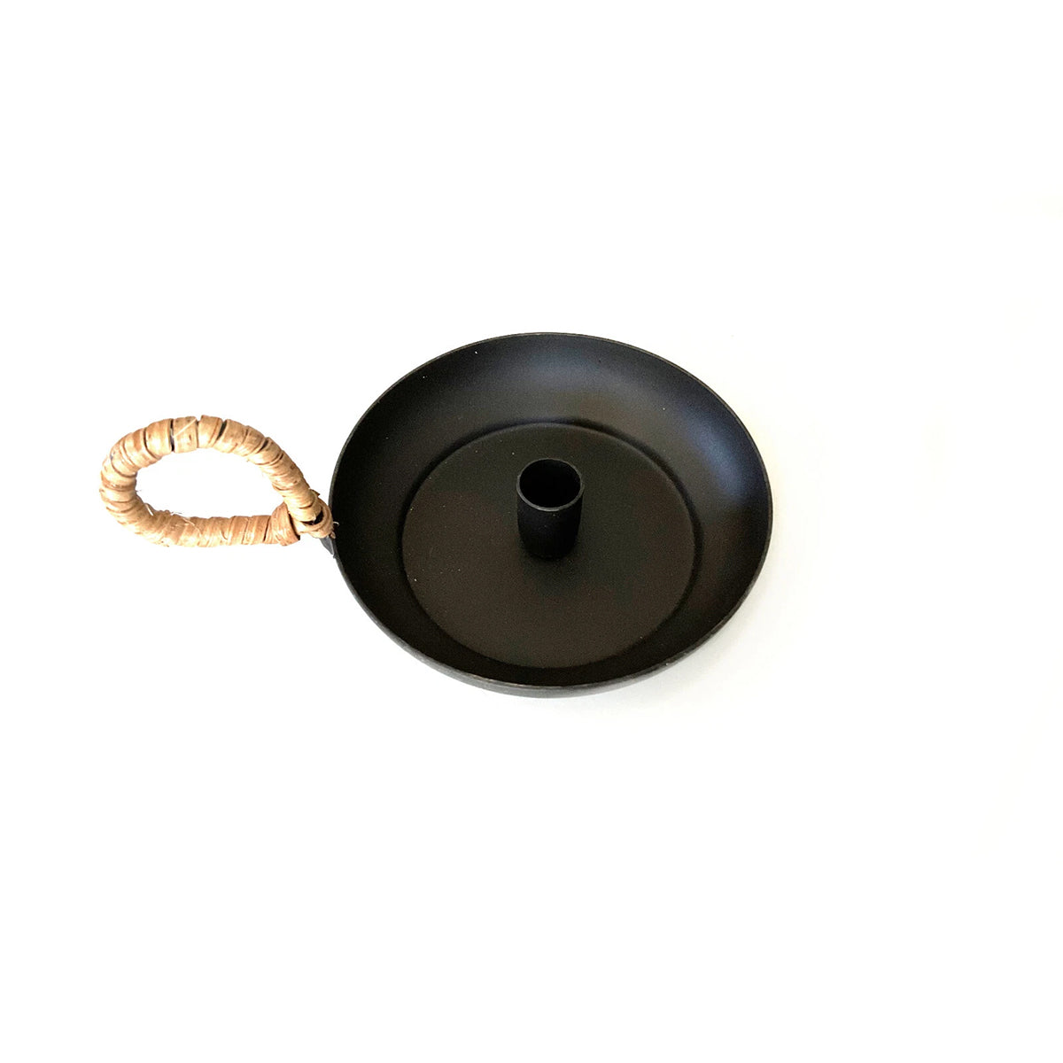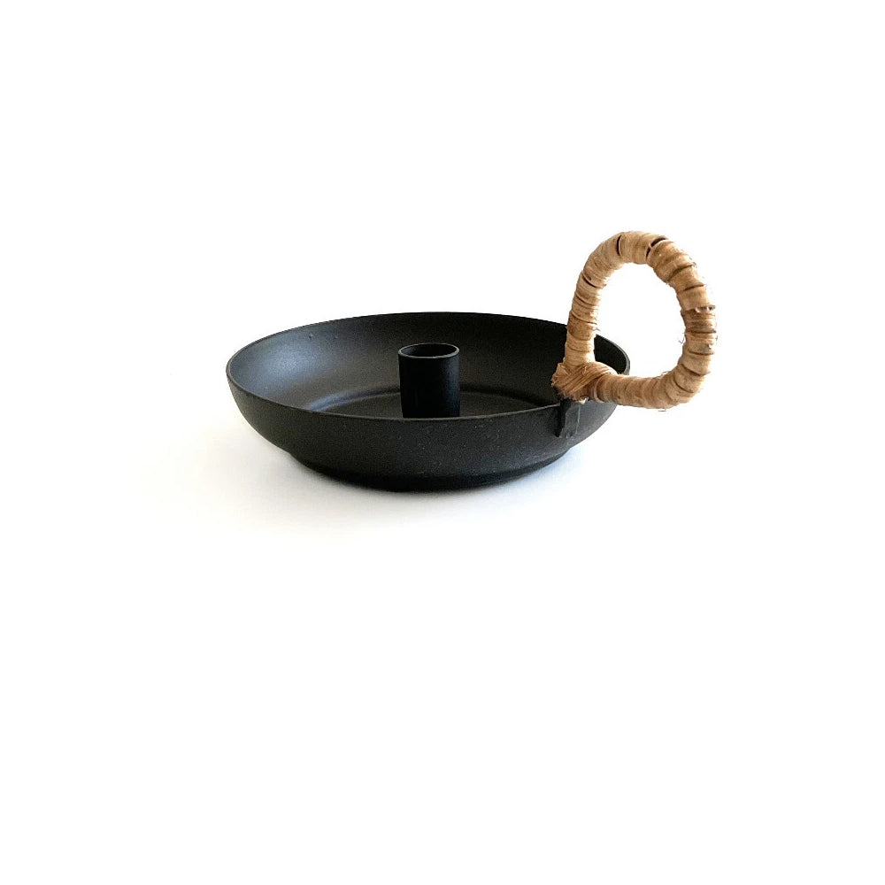Este portavela con un diseño atemporal está fabricado en metal negro y dispone de un mango cubierto de bambú, adecuado para velas Taper de 1,3 cm de diámetro, las que puedes encontrar aquí.