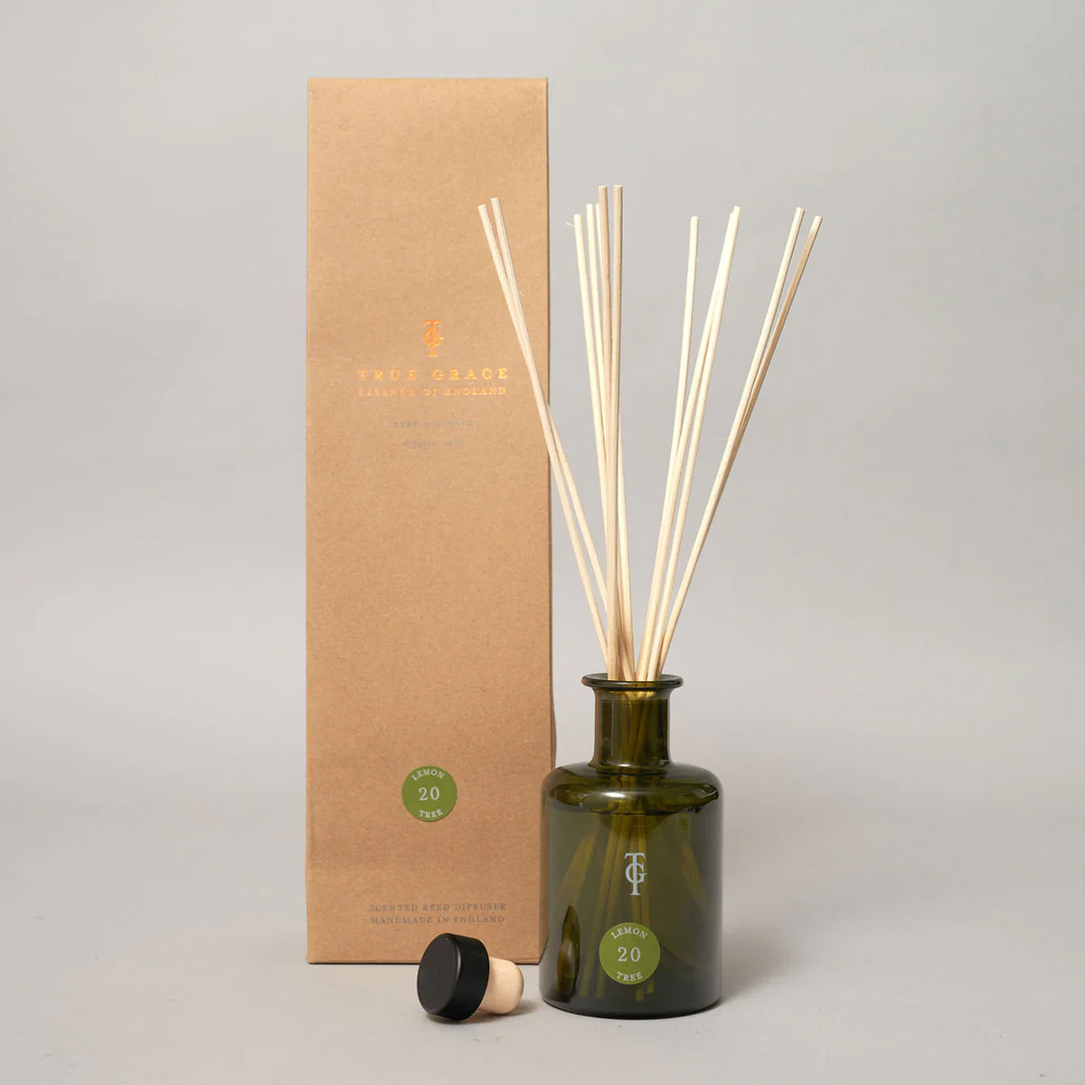 El difusor Lemon Tree llena la habitación con una fragancia vigorizante y suave, rica en notas de bergamota, jazmín y ámbar blanco. Hecho en pequeñas cantidades en nuestra fábrica de Wiltshire y presentado en una elegante botella de vidrio verde este difusor es perfecto para mantener frescos tus espacios.